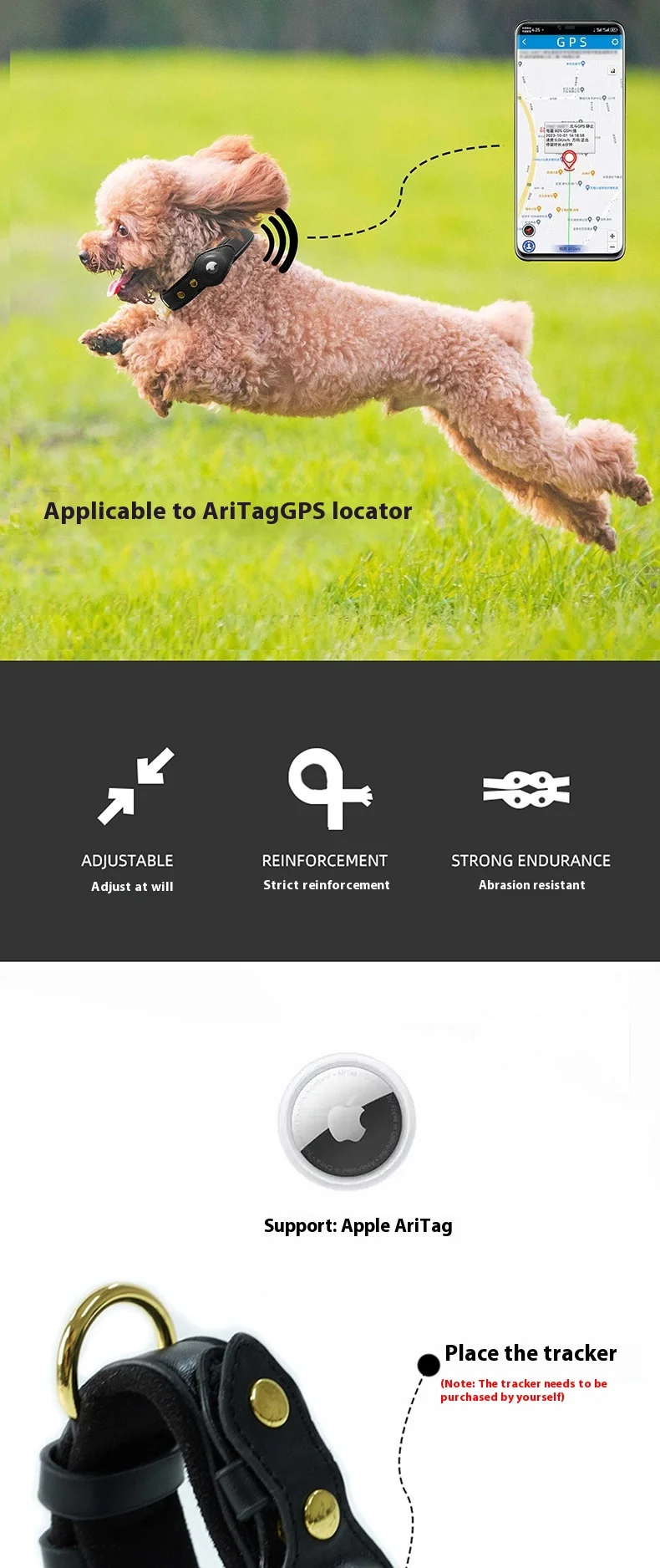 🛠️ Comment l'utiliser - Il vous suffit de glisser votre Airtag dans le compartiment dédié, ajuster la taille selon votre animal et profitez de la tranquillité d'esprit en sachant qu'il est en sécurité.