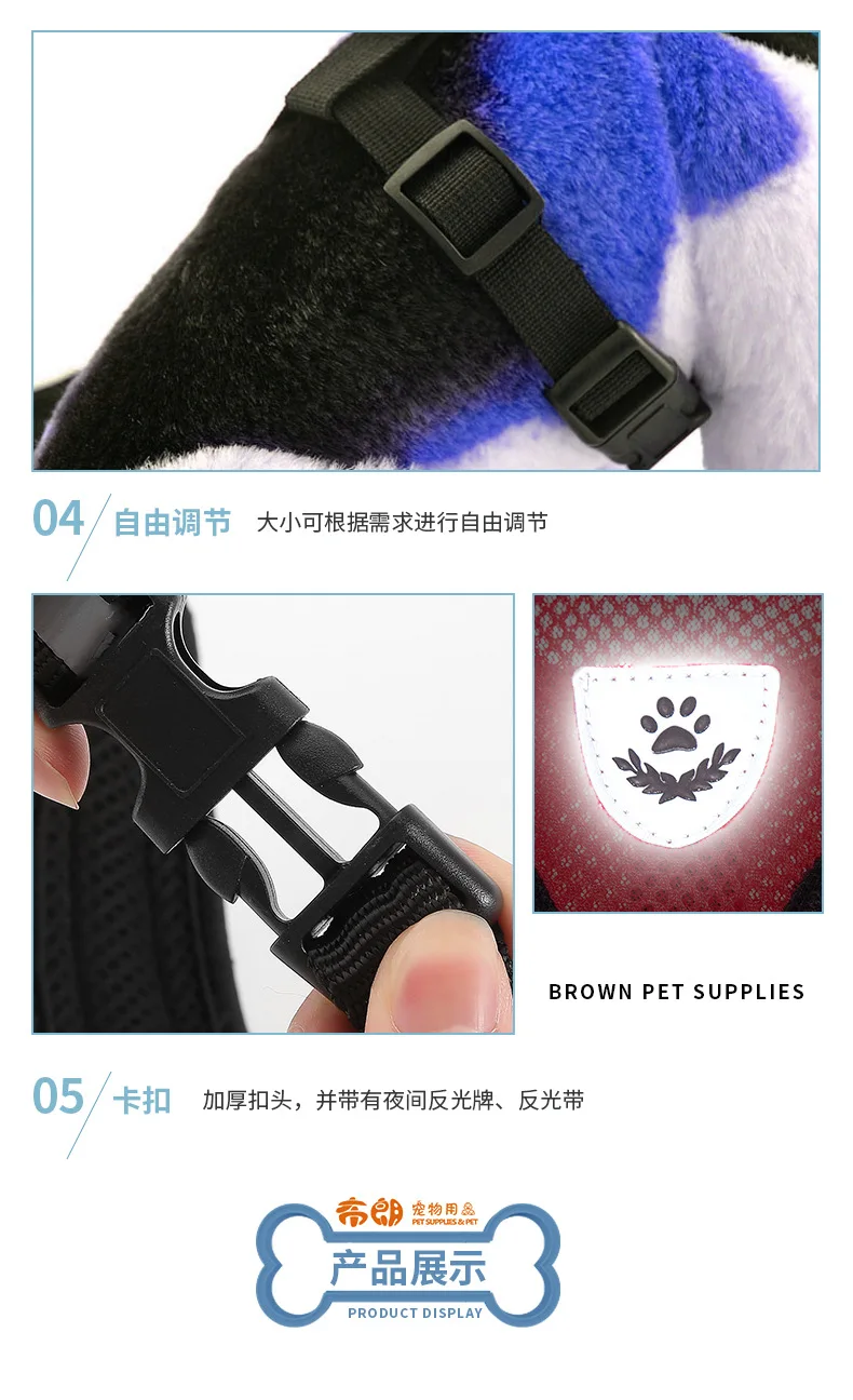 𩮠Comment l'utiliser - Enfilez simplement le harnais sur le dos de votre chien, ajustez les sangles pour un maintien sĂ©curisĂ©, et attachez la laisse. Parfait pour les balades en ville, les parcs ou juste une sortie rapide dans le quartier.